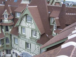 Le prix Résidences et Tourisme a été attribué à la société UTB, représentée par Gérard Vallée, pour la réfection complète de la toiture de l’Hôtel Normandy de Deauville (14). Elle a été réalisée avec la Tuile Plate Rustique coloris Pays d’Auge. Les noues sont de type fermées et réalisées avec des noquets en plomb. Les arêtiers sont réalisés comme à l’identique : ils sont fermés à noquets en plomb disposés tous les rangs. Le jury a également noté le traitement des rives à la normande, ainsi que la parfaite réalisation des tourelles.