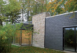 • CUPACLAD® 201 se destine à la fixation horizontale des ardoises à l’aide de crochets spécifiques en acier inoxydable. Exclusivement distribués par CUPA, ces crochets, légèrement visibles, sont également disponibles en alternative laquée noire pour davantage de discrétion. L’association de l’ardoise et de l’acier des fixations en façade confère à l’ouvrage une esthétique contemporaine unique.