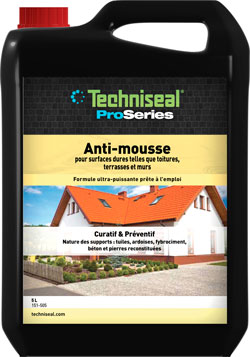 Puissant fongicide et algicide, le nouvel Anti-mousse concentré Techniseal détruit efficacement et durablement toutes les mousses, les lichens et les algues présents sur les surfaces dures.