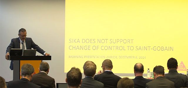 Le Conseil d'Administration et la Direction du Groupe Sika ont été informés vendredi 5 Décembre 2014 soir, que le groupe français Saint-Gobain entend acquérir indirectement la totalité des actions détenues par la famille Burkard, actuel actionnaire majoritaire de Sika.