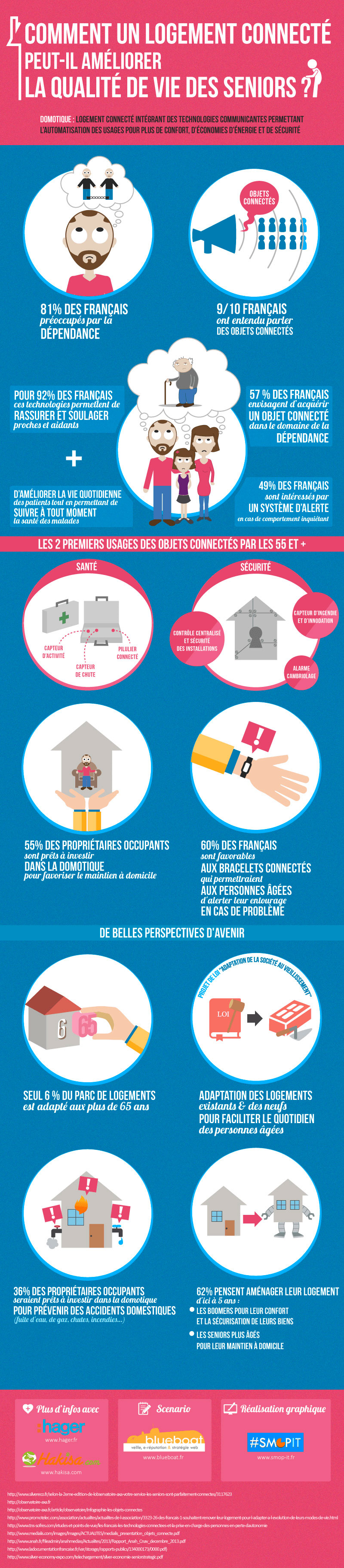 La société Hager, en partenariat avec Hakisa, propose une infographie axée autour des bénéfices de la domotique et du logement connecté, pour la qualité de vie, l’autonomie à domicile des seniors.