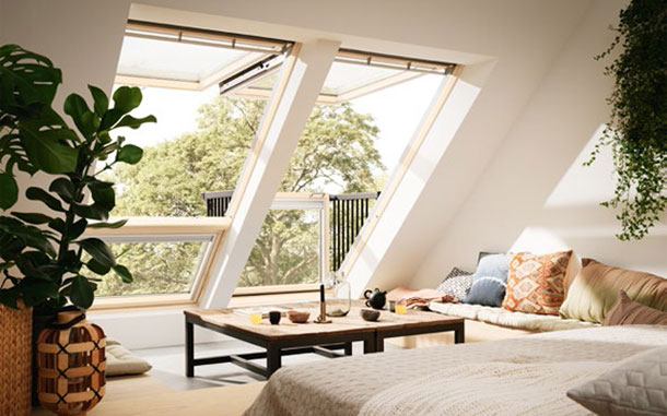 La verrière balcon VELUX CABRIO® est équipée des fondamentaux VELUX: ventilation grâce au clapet intégré à la barre de manoeuvre permettant une aération minimum fenêtre fermée et cela même par temps de pluie ; un entretien espacé grâce au traitement «clair & net» du vitrage, une vue claire grâce à son traitement «anti-rosée» et un loqueteau permettant un retournement de la fenêtre à 180° pour faciliter et sécuriser le nettoyage de la partie haute. Elle peut facilement être équipée de stores d’occultation pour un sommeil tout en douceur.